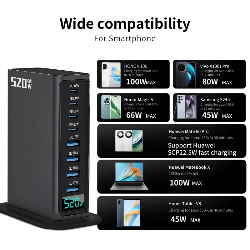 [GaN Tech] Bakeey 520W 8-Port USB PD Charger 4USB-A+4USB-C PD QC SCP PPS Fast Charging Digital Desktop Charging Station EU Plug US Plug for iPhone 16 16 Pro 15 14 13 for Xiaomi 15 Ultra for Samsung Galaxy S25 Ultra for Huawei Pura X
