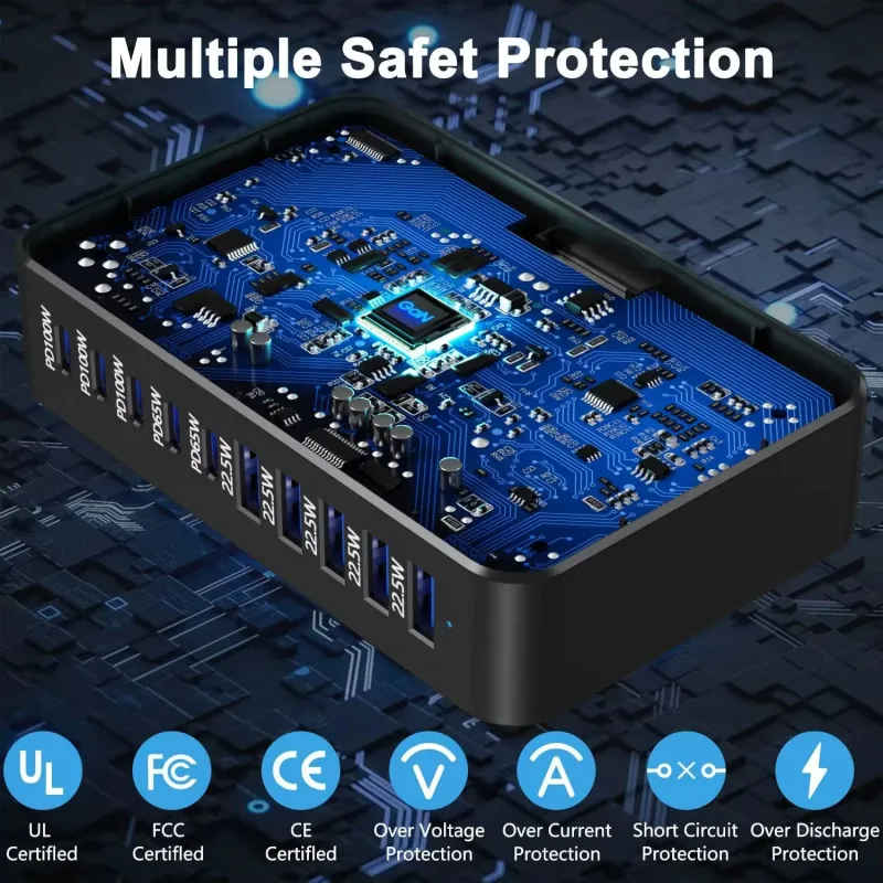 [GaN Tech] Bakeey 540W 10-Port USB PD Charger 5USB-A+5USB-C PD3.0 QC3.0 FCP BC1.2 Fast Charging Desktop Charging Station EU Plug for iPhone 17 17Pro 16 15 14 Pro Max 13 12 for Huawei Mate XTs for Xiaomi 17pro for iPad for Airpods for Apple Watch