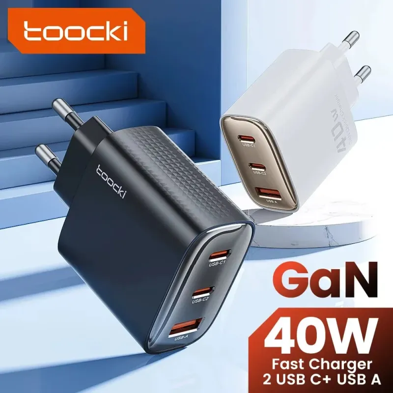 [GaN Tech] Toocki TCT40-22EU 40W 3-Port USB PD Charger USB-A+2USB-C PD Fast Charging Wall Charger Adapter EU Plug for iPhone 17 17Pro 16 Pro Max 15 14 13 for Xiaomi 17pro for Huawei Mate XTs for OPPO for VIVO
