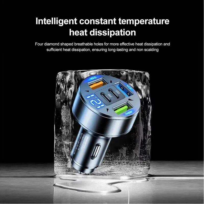 JMG 250W 5-Port USB PD Car Charger Adapter 3USB-A+2USB-C PD QC3.0 Fast Charging with Blue LED Digital Display for iPhone 16 16 Pro 15 14 13 Pro Max for Samsung Galaxy S25 Ultra for Huawei Pura X for Xiaomi 15pro