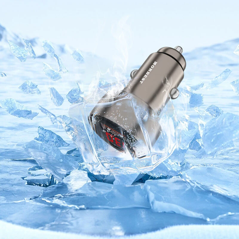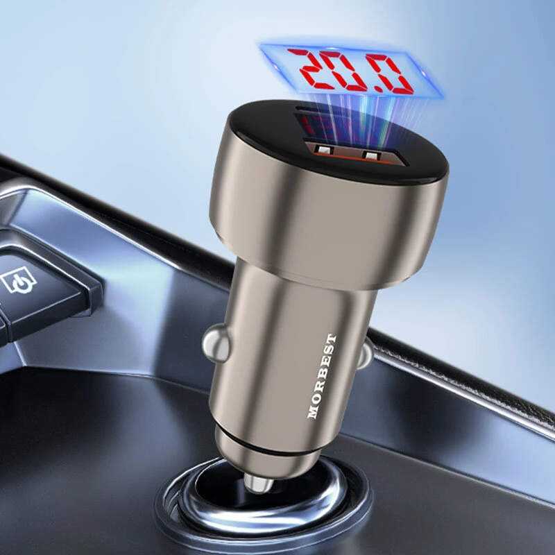 MORBEST C77CA 48W 2-Port USB PD Car Charger Adapter USB-A+USB-C PD QC Fast Charging with Red LED for iPhone 16 Pro 15 14 13 Pro Max for Samsung Galaxy Z Flip6 for Xiaomi MIX Fold4 for Huawei Mate XT