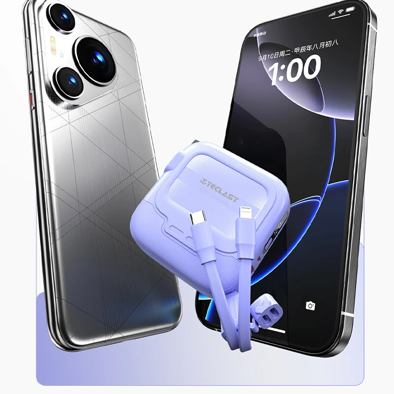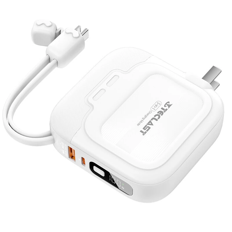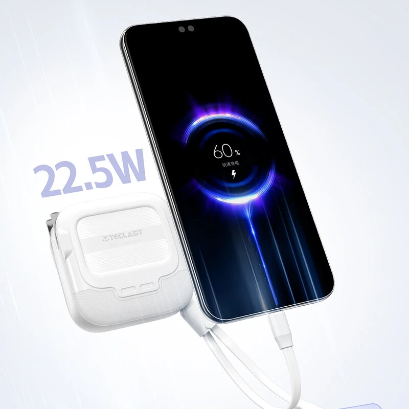 TECLAST S10 Pro 22.5W 10000mAh Comes with Plug Power Bank Built-in Type-C+iP Cable External Battery Power Supply with 2 Input & 3 Outputs Support PD SCP Fast Charging for iPhone 16 16 Pro 15 14 13 Pro Max for Huawei Mate XT for Oppo Reno 13