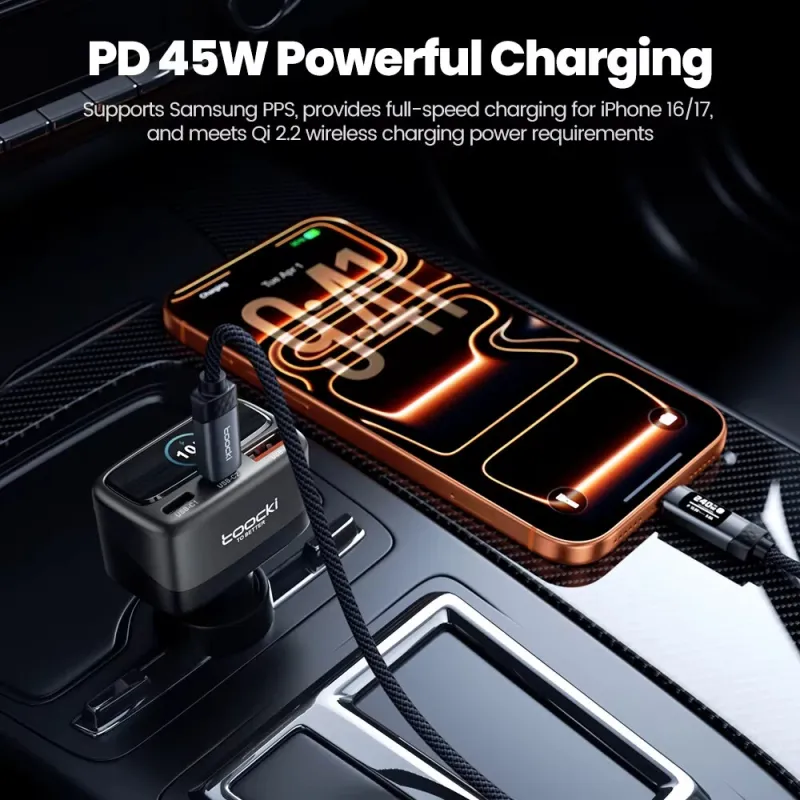 Toocki C46 105W 3-Port USB PD Car Charger Adapter with Smart Display Screen USB-A+2USB-C PD Fast Charging for iPhone 17 17 Pro Max 16 15 14 for Xiaomi 17pro for Samsung Galaxy S25 Ultra for Huawei Mate XTs