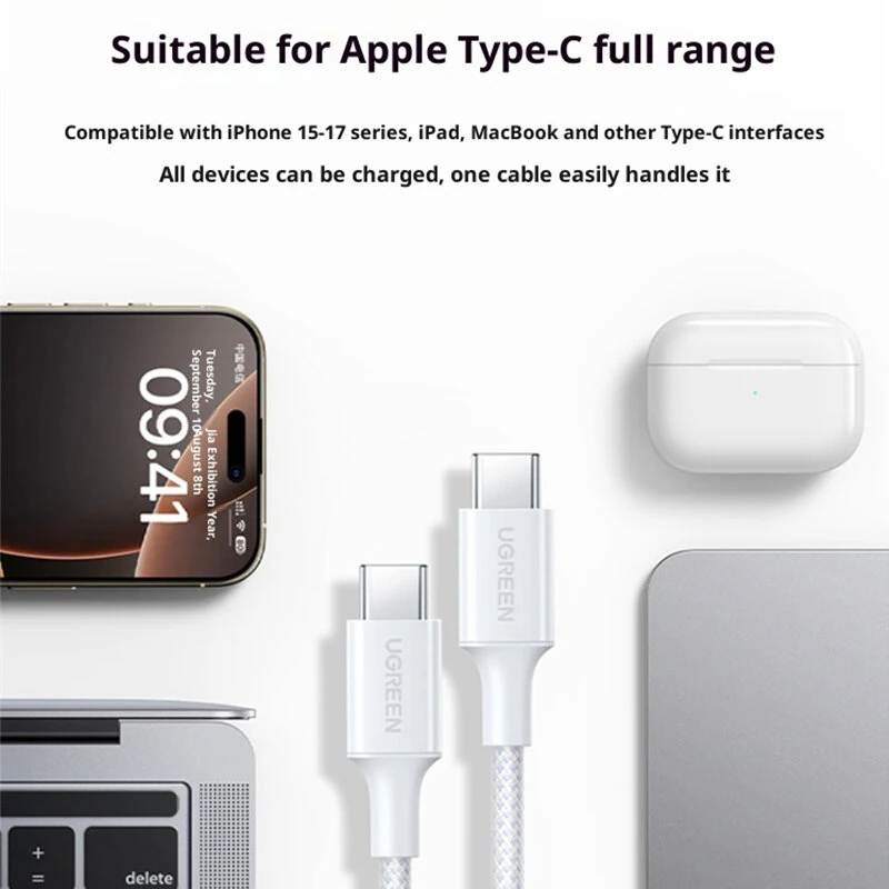 UGreen L501 3A 60W Type-C to Type-C Cable PD3.0 Fast Charging Data Transmission Tinned Copper Core Line 1M/1.5M Long for iPhone 17 16Pro 15 Pro Max for Xiaomi 17pro for Huawei Mate XTs for OPPO Reno 15