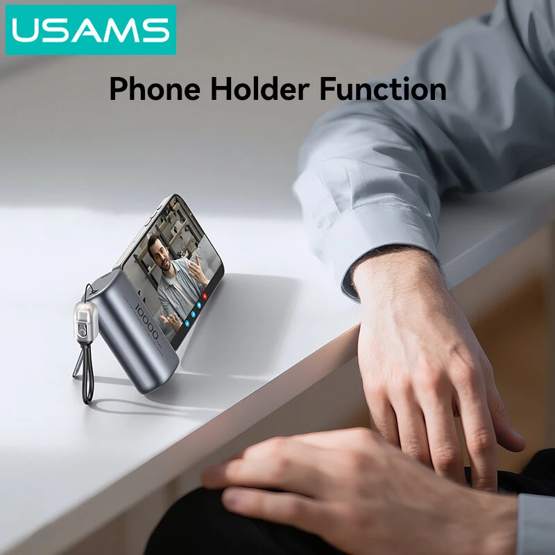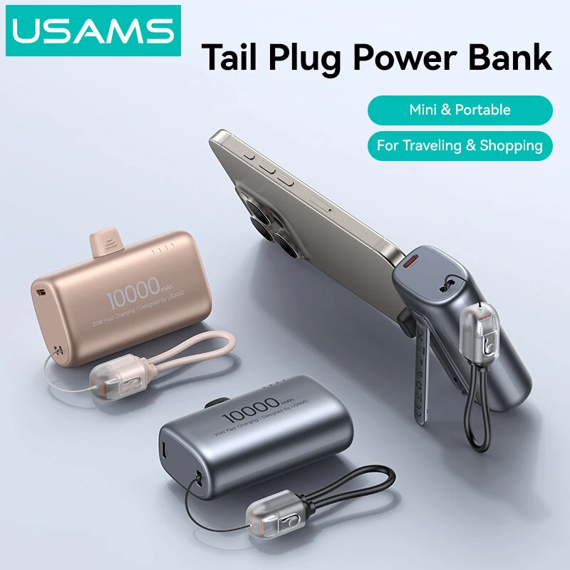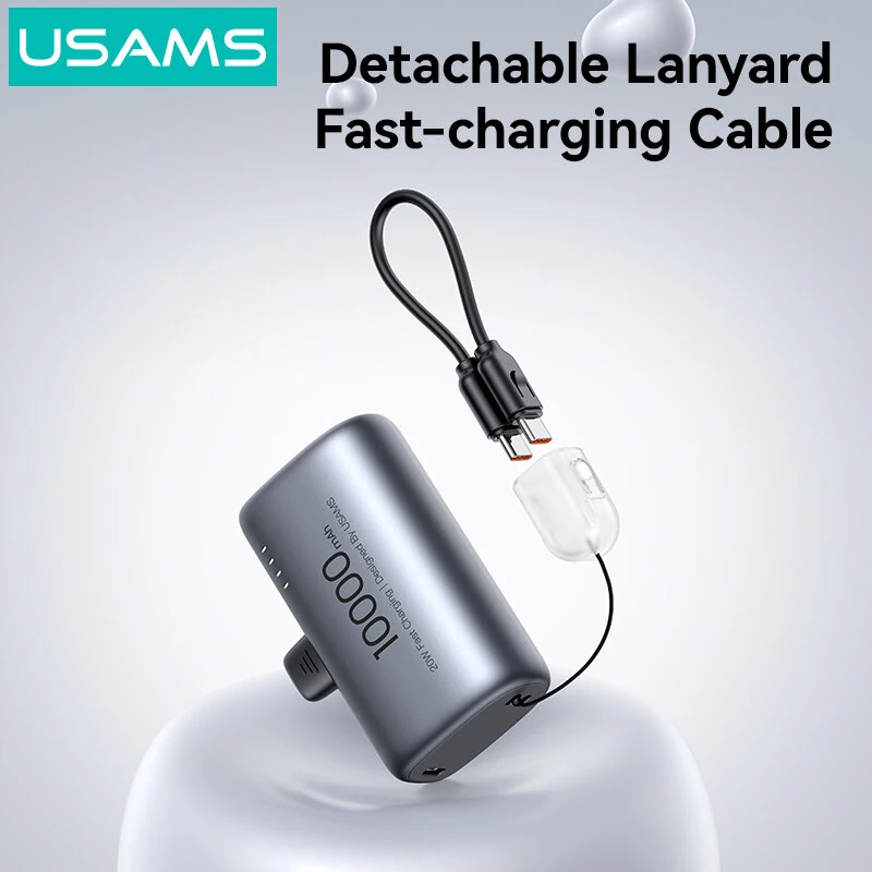 USAMS CD252 PB82 Tail Plug Capsule Power Bank 20W 38.5Wh 10000mAh Type-C Plug-in External Battery Power Supply with 1 Input & 2 Output Fast Charging for iPhone 17 17 Pro 16 15 Pro Max for Huawei Pura 80 Ultra for XIAOMI Built-in Detachable Lanyard Cable