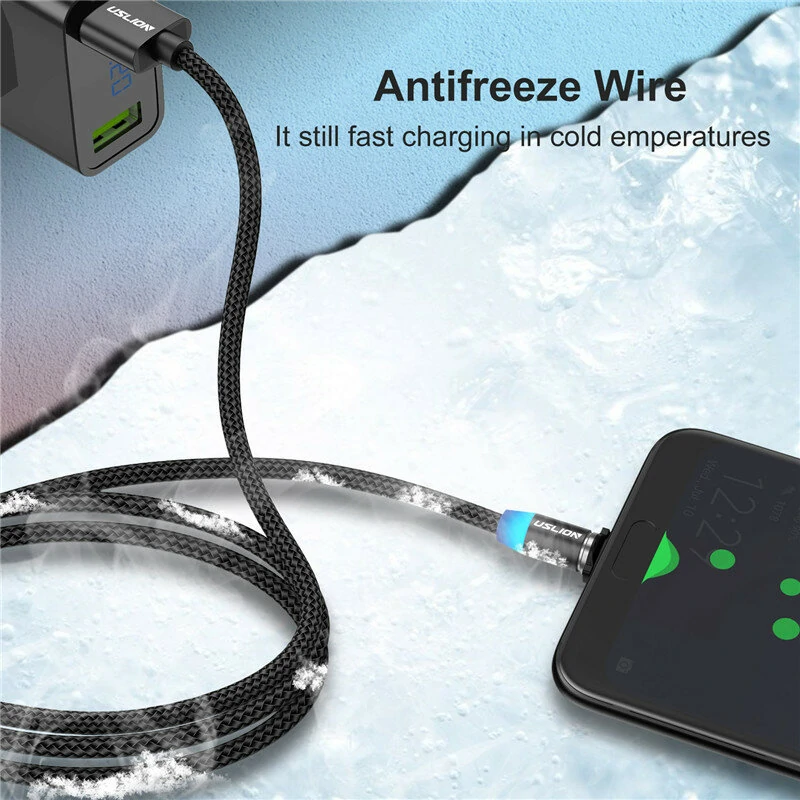USLION 2.4A USB-A to Type-C Cable Magnetic Charging Nylon Braided Copper Core Line 1M/2M Long for Xiaomi 13 Pro for Huawei Mate 50 for OPPO Reno9 for Honor 80 GT