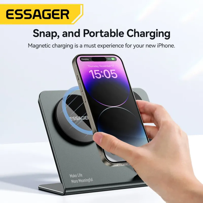 ESSAGER 3 in 1 PD15W High Power Magnetic Desktop Wireless Charger for iPhone 15 14 13 12 Pro/Max/Plus for Apple Watch 9/8/7/6/5/4/3/2/SE/Ultra 2 for AirPods 3/2/Pro