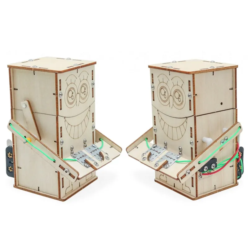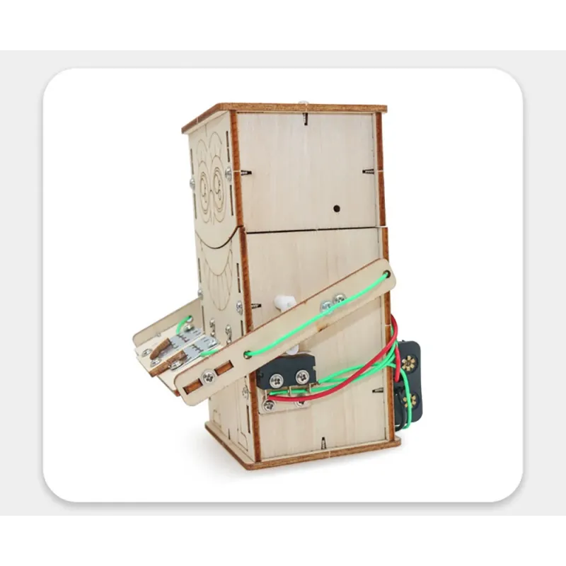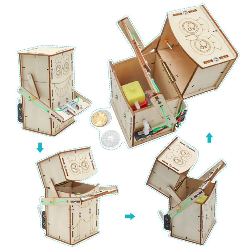 Wooden DIY Electric Powered Coin Eating Robot Puzzle Assembly Technology Small Production Creative Invention Mechanical Science Toy