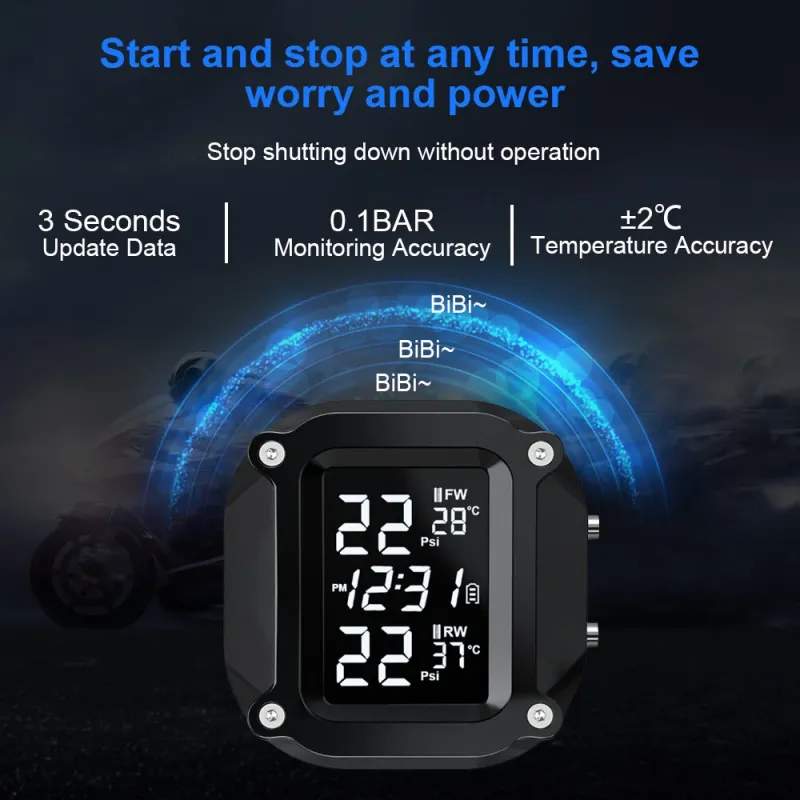 Extractme Wireless TPMS Motorcycle Tyre Temperature Alarm Sensor USB Charging LCD Display Tire Pressure Monitoring System
