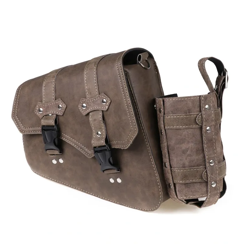 Left / Right Side Universal Saddlebag Storage Tool Bag W/ Bottle Holder PU Leather Waterproof Motorcycles Bag