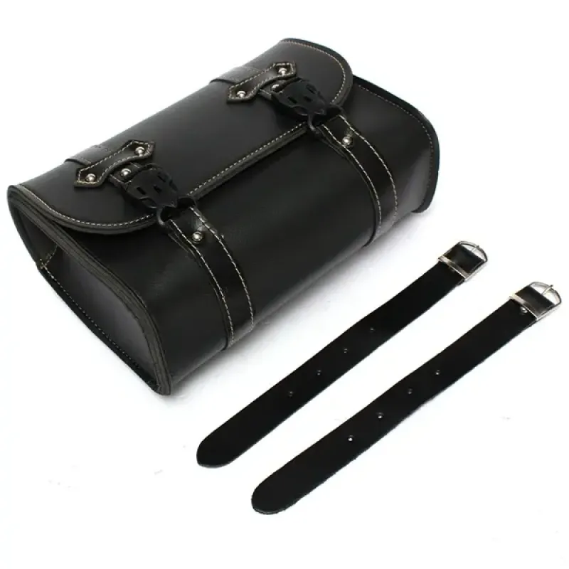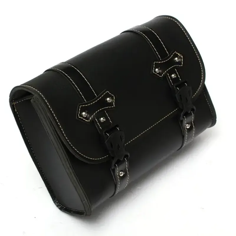 Motorcycle Saddle Leather Bag Storage Tool Pouch Black