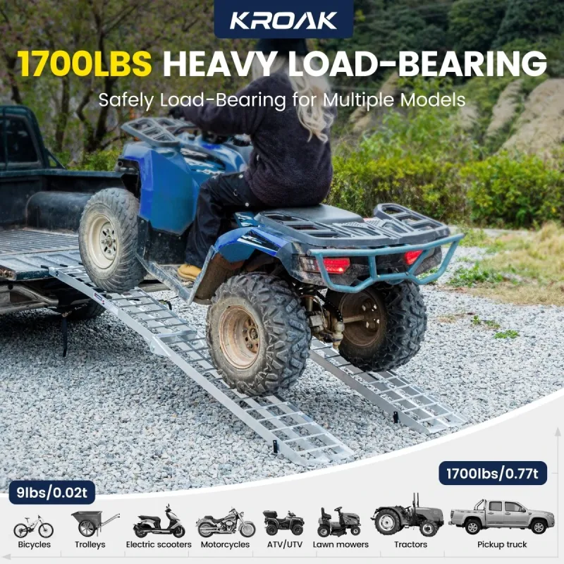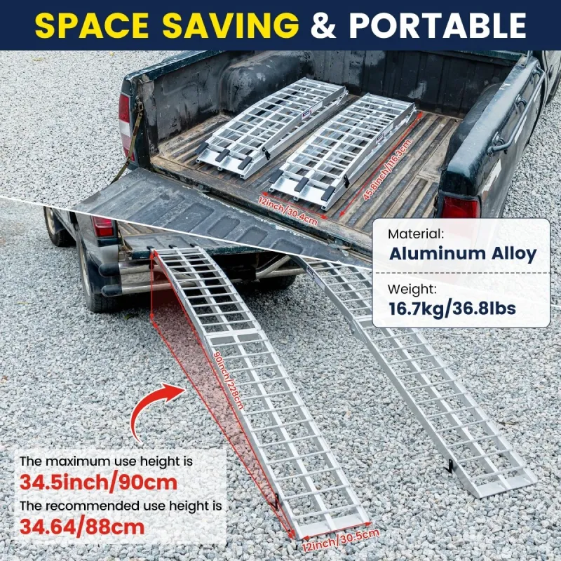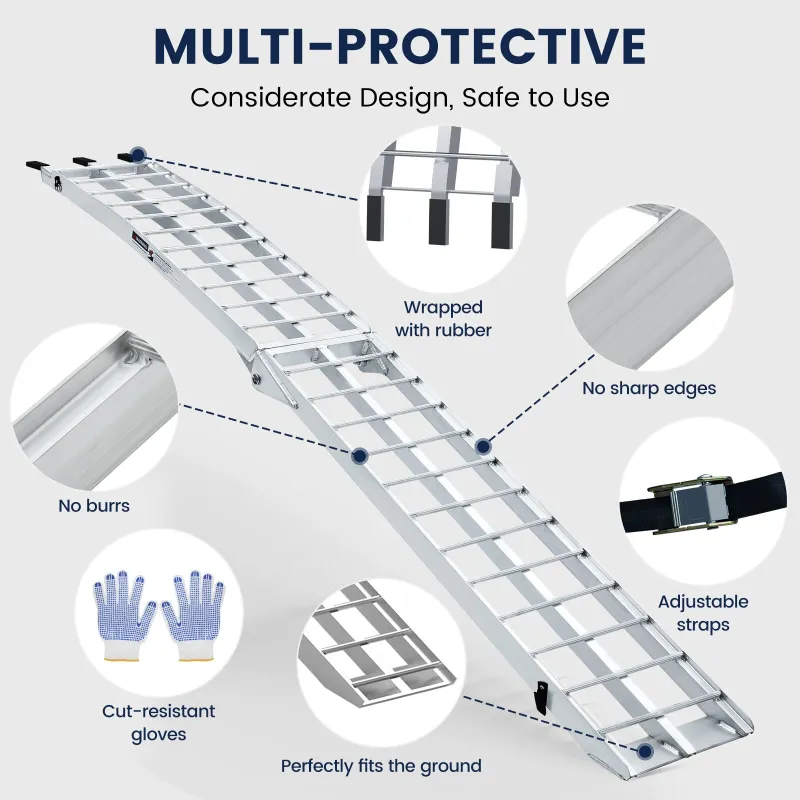 1700 lbs Capacity Heavy Duty Truck Loading Ramp Portable Pickup Includes Gloves Secure Clamps