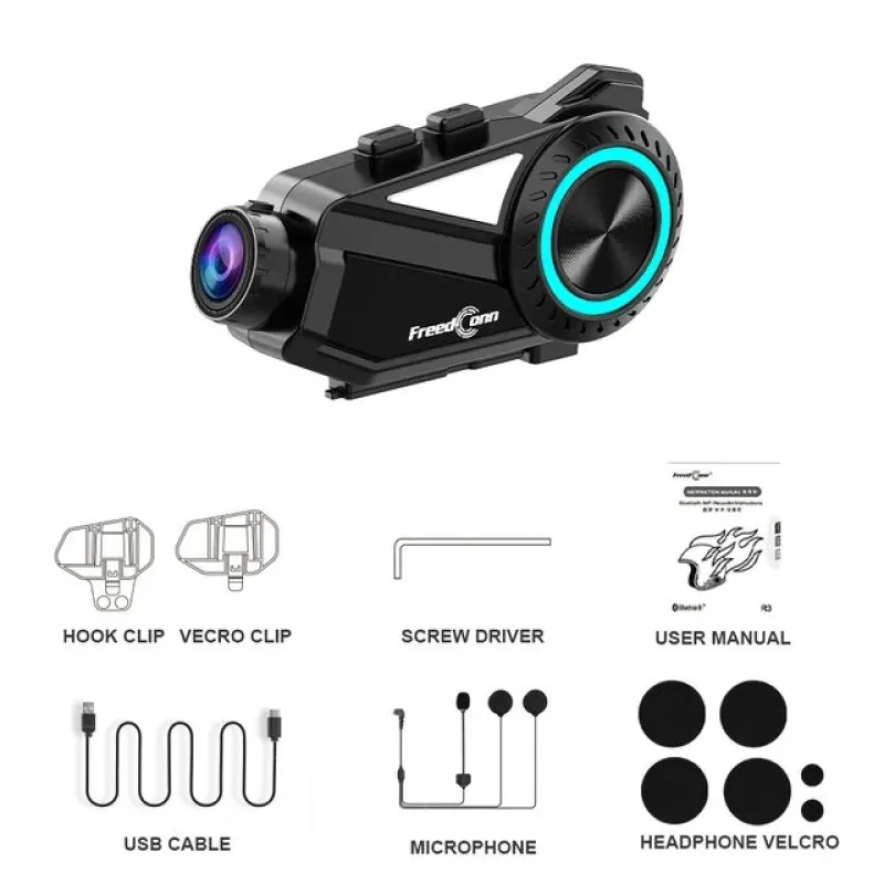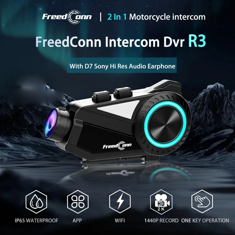 Freedconn 1000m Motorcycle Dash Cam Intercom 6 Person Group Tallk bluetooth Headset Helmet Recorder WiFi App Motorbike Motor Auto DVR Headphone R3