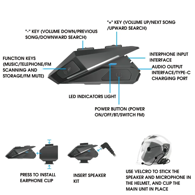 Motorcycle Riding Helmet Headphones Hands-free Calling Wireless Headset Bluetooth V5.0 Helmet Music Headset