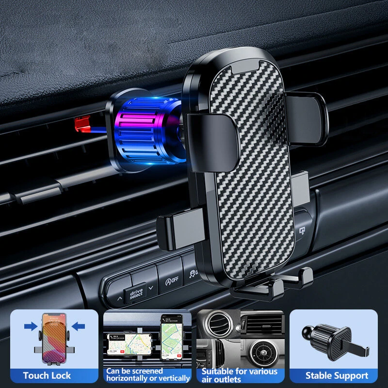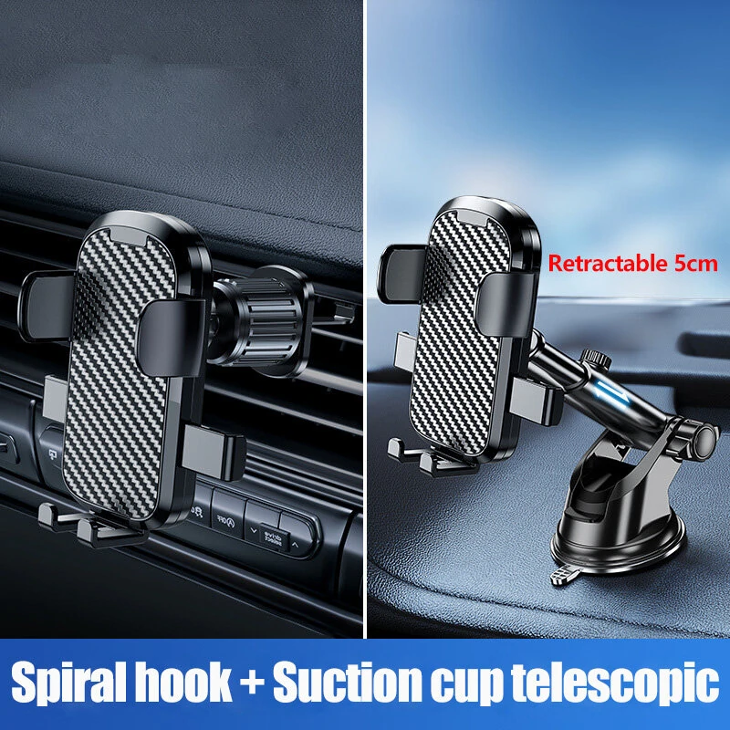 Car Phone Mount Adjustable Air Vent Dashboard Stand Gravity Phone Holder Spiral Hook + Suction Cup Style Navigation Fixed Instrument Console Mobile Phone Support Bracket