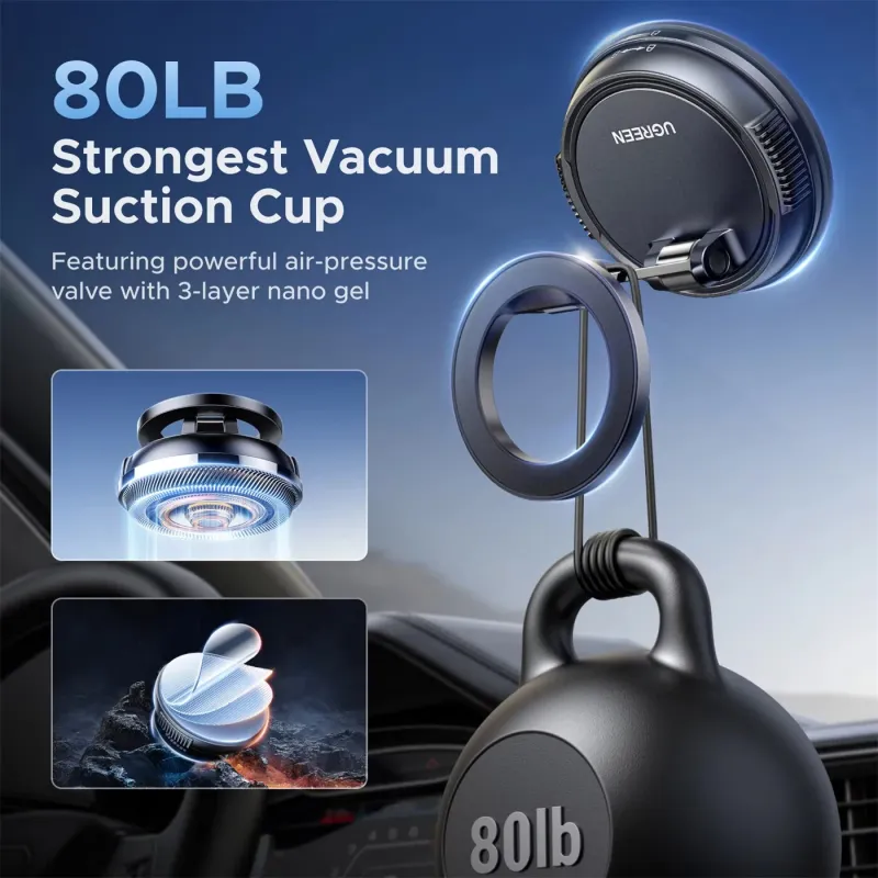 UGREEN LP969 Magnetic Car Phone Holder Dashboard Suction Cup 360Rotatable Car Mount For Magsafe 16 15 14 ProMax Xiaomi