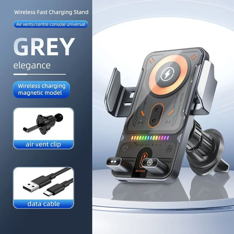 F18 15W Auto Clamping Wireless Car Charger Adapter Super Fast Charging Air Vent Car Phone Holder for iPhone 16 15 Pro Max for Samsung Galaxy S25 Pro for Huawei Pura X