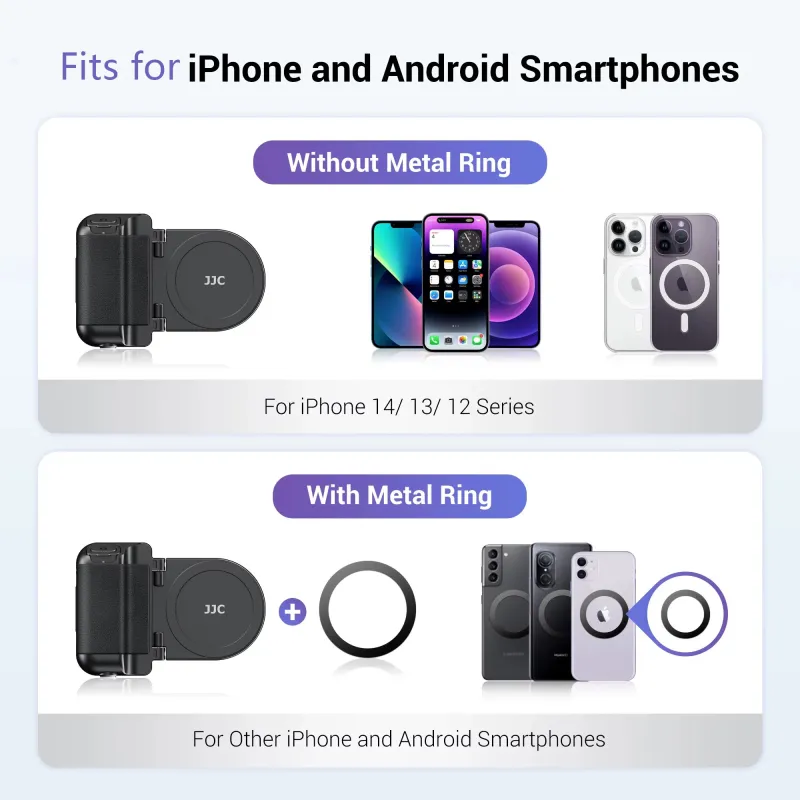 JJC Snapgrip Magnetic Phone Grip Stand with bluetooth Remote 17 Heavy-Duty Magnets 5.1lbs MagSafes Tripod Mount 180Rotation for iPhone 16 15 14 Vlog Selfie Video