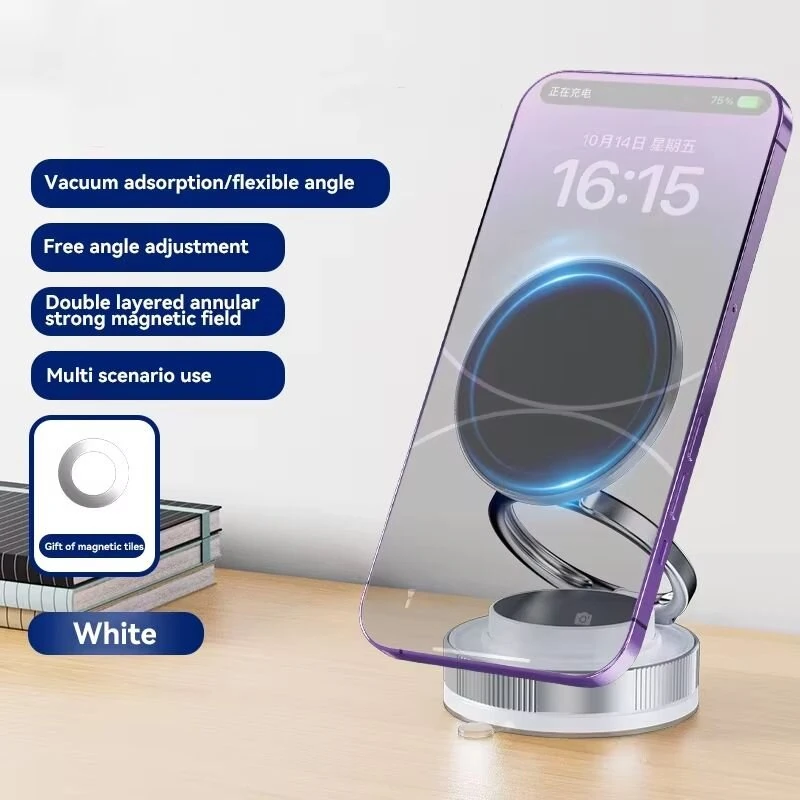Strong Magnetic Phone Holder Foldable Design 360 Adjustable Vacuum Car Mount for Car Desk Bathroom Magnetic Bracket