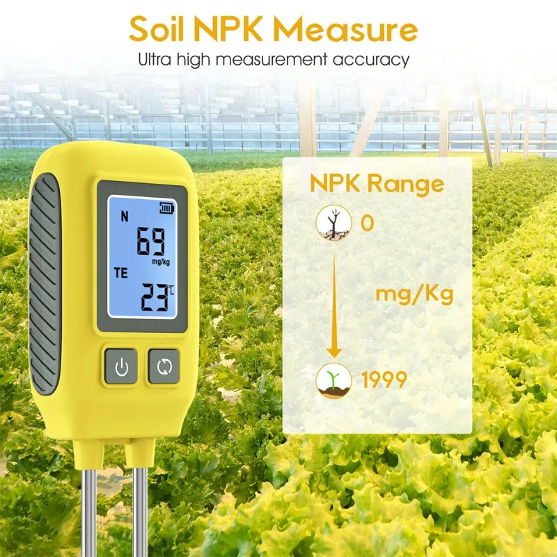 4in1 Soil Tester N/P/K Tester Digital LCD creen -10 to 80 Temperature Meter High Accuracy Stainless Steel Probe for Gardens Lawns Greenhouses