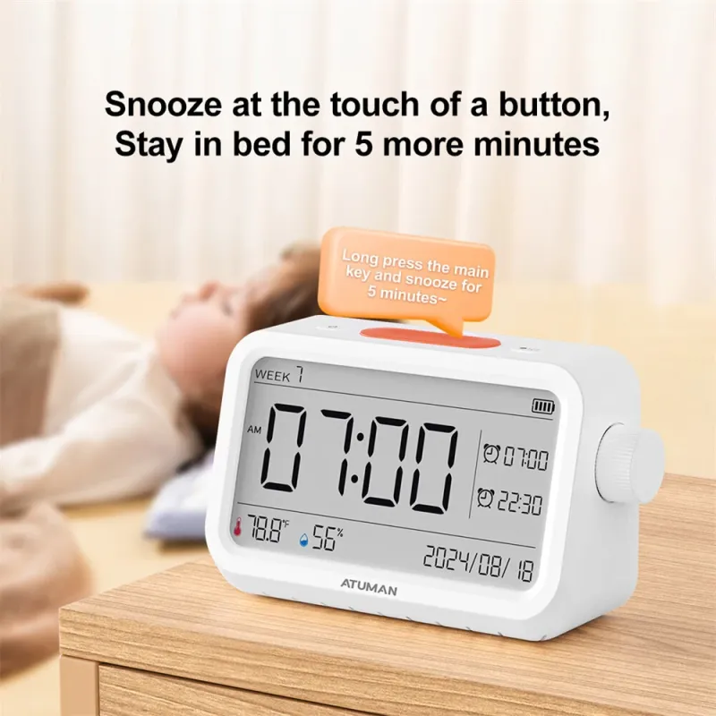 Atuman MT2 3in1 Multifunctional Hygrometer Alarm Clock Timer -9.9C~60C LCD Display Temperature Humidity Monitor Accurate Environmental Monitoring