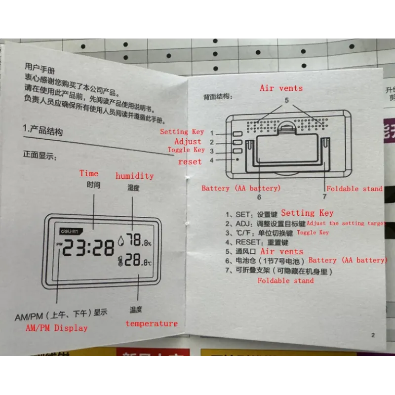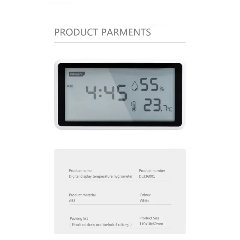 Deli Electronic Thermometer Hygrometer Weather Station with High Precision 0.1 Temperature Humidity LCD Display Clock Function Long Battery Life- Ultimate Indoor Weather Monitoring Station