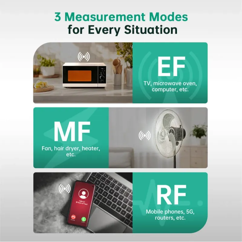 ERICKHILL RT-100S 3 in 1 EMF Meter Electric Magnetic RF Fields Detector Instant Readings Color-Coded Display with Triple Alerts Energy Efficient and Portable