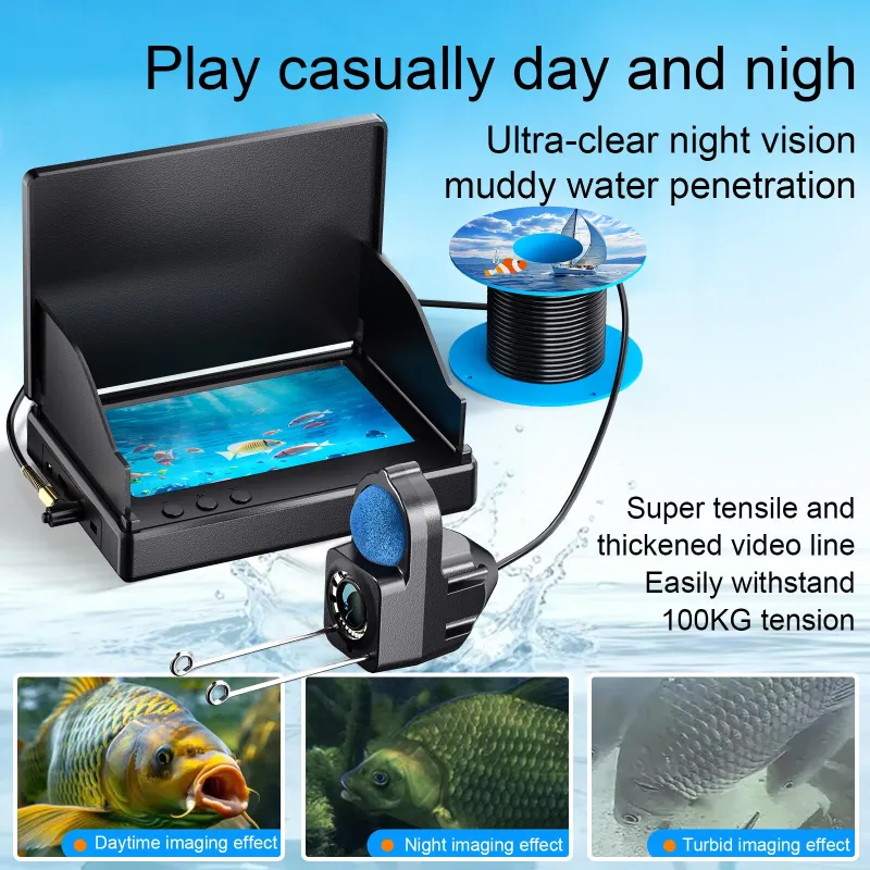 4.3-Inch Underwater Viewing Camera 1080P HD Fish Finder 5000mAh Battery IP68 Night Vision Type-C Charging 15-30m Cable