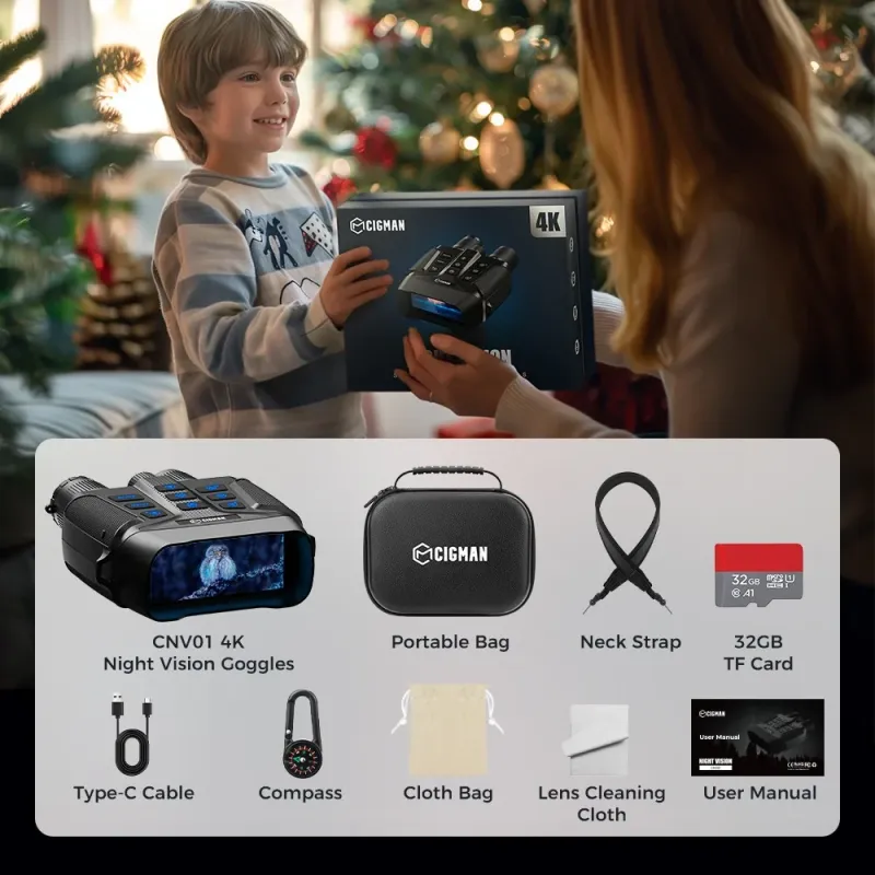 CIGMAN CNV01 4K Night Vision Binoculars 600M Range 3.99" HD Display 5x Digital Zoom Infrared Spotlight 512GB Expandable Memory Rechargeable Battery
