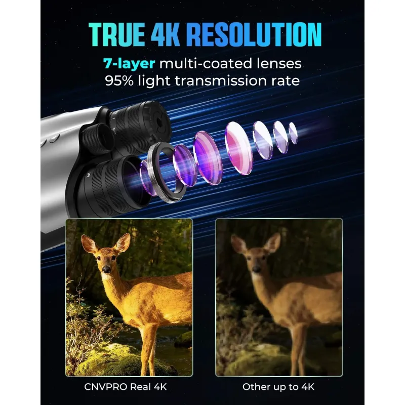 CIGMAN CNVPRO Night Vision Binoculars 4K Video 52MP Photos 8X Zoom WiFi Streaming Infrared Vision 5100mAh Battery IP54 Waterproof Outdoor Camping Hunting