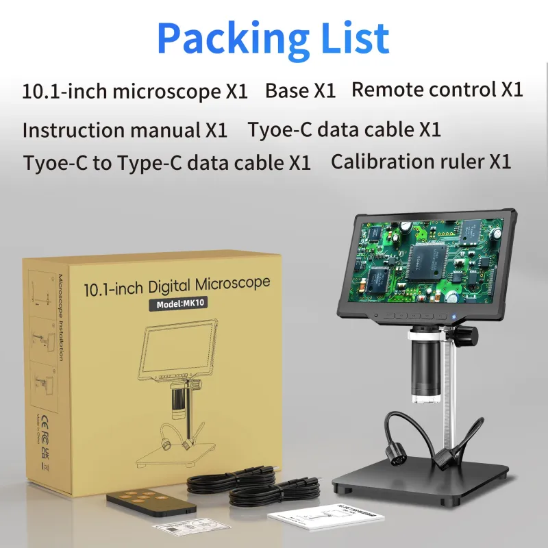 MK10 10.1 Inch IPS Screen Digital Microscope Adjustable LED HD Camera Type-C Interface Compatible with WindowsMac