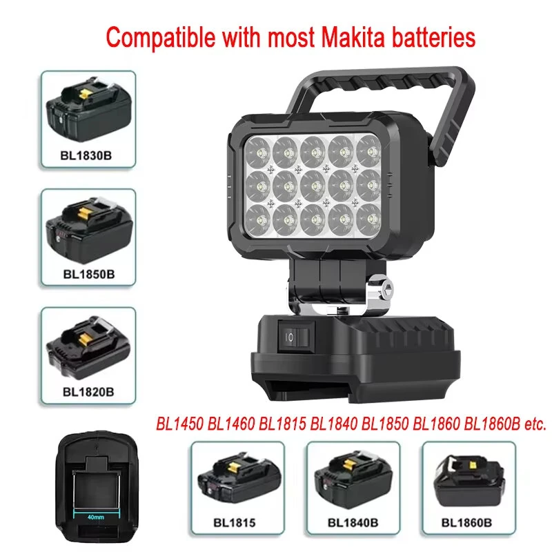 Outdoor Flood Light 3 inch Work Light For Makita 14.4V 18V Li-ion Battery LED Flashlight Lantern Camping Lamp Emergency Lighting