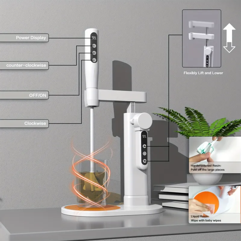Rechargeable Epoxy Mixer USB Powered Anti-Bubble Design Hands Free Resin Blender Lithium Battery for DIY Crafts Jewelry Making