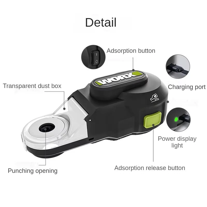 WORX WA1602 Electric Hammer Drill Cleaner 35ml Visual Dust Box USB Type C Rechargeable 5V 1000mAh Compact Design Professional Tool Accessories