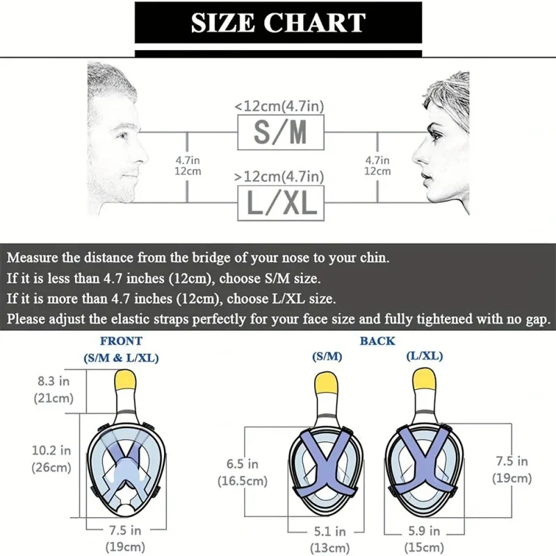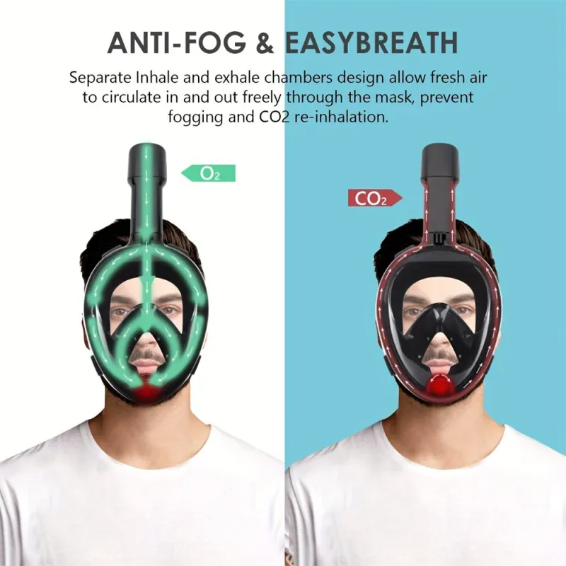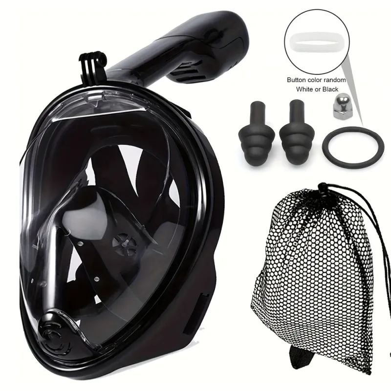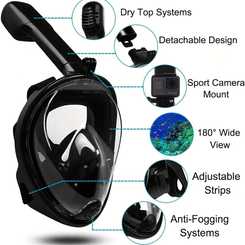 Full Snorkel Goggles 180 Panoramic View Safe Breathing System Diving Glasses With Assorted Colors Adjustable Strips And Action Camera Mount, Anti-Fog Anti-Leak Snorkeling Goggles Set For Snokel Diving