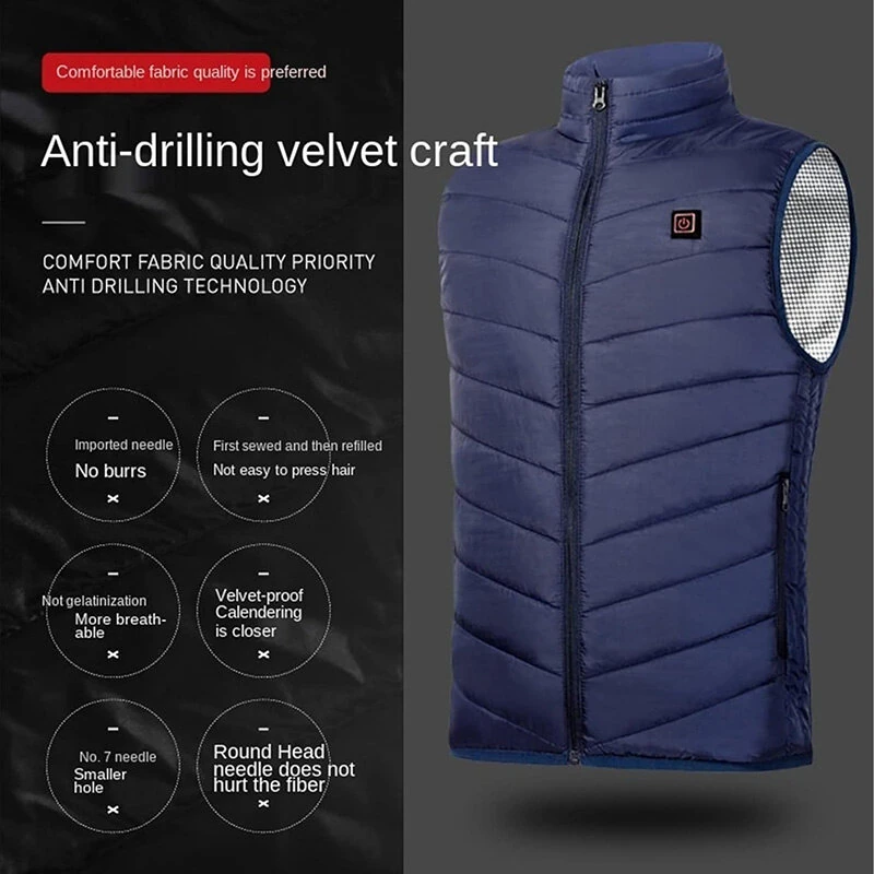 TENGOO HV-02Heated Vest 2 Heating Zones Trible Gears Temperature Level Control USB Charging Warm Electric Heating Jacket for Winter Outdoors Sports