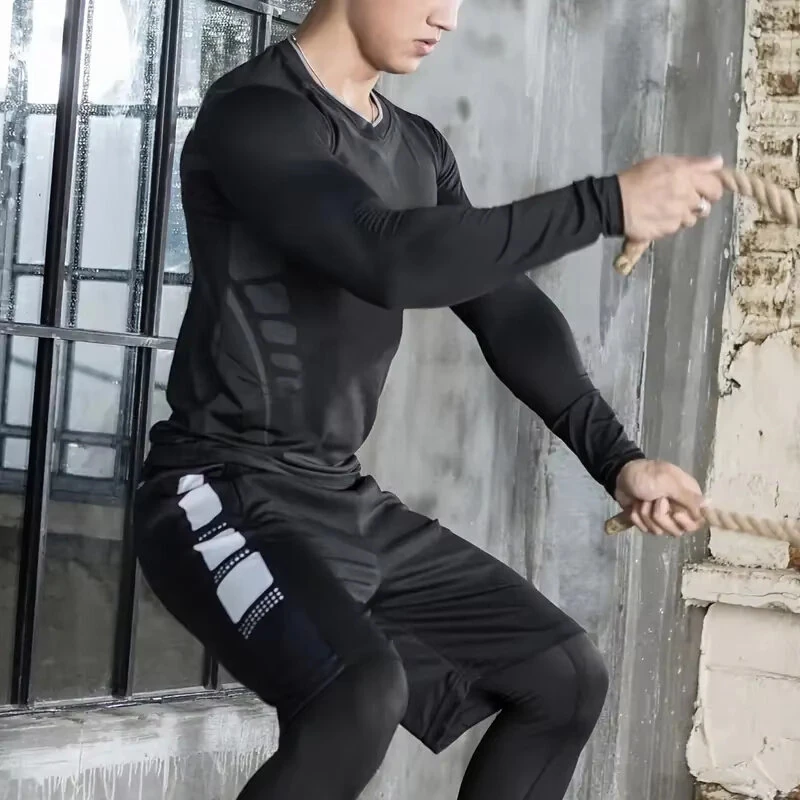 TENGOO Men's Thermal Underwear Set, Long johns set, Compression Thermal Base Layer Set, Moisture Wicking & Breathable Basic Long Sleeve & Letter Belt Leggings Winter Thermal Wear, Men's Thermal Clothing