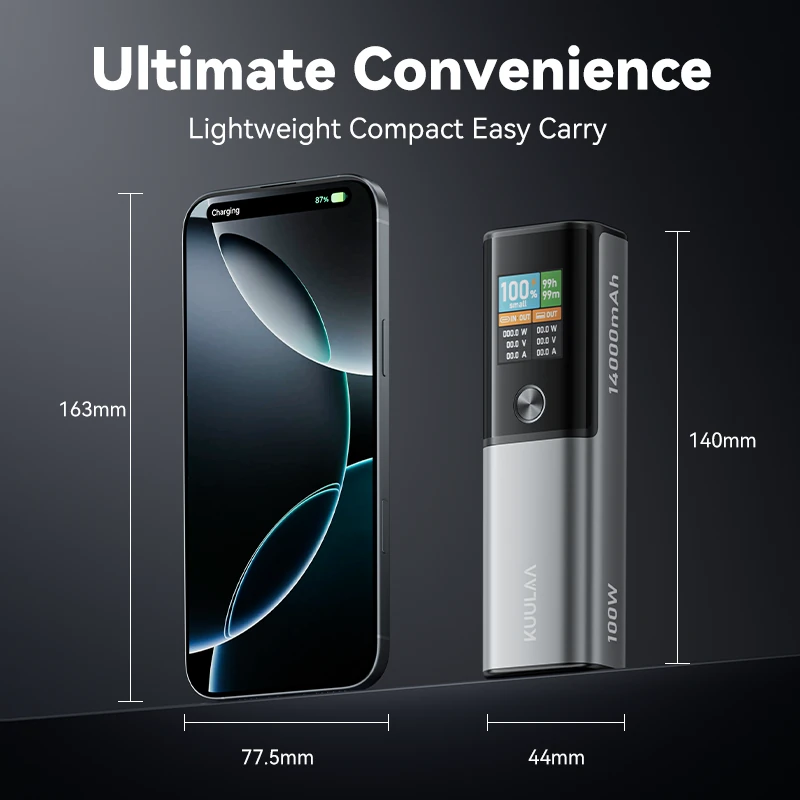 KUULAA KL-YD78 100W 14000mAh Smart Display Power Bank External Battery Power Supply with 1 Input & 2 Outputs Support PD QC AFC SCP Fast Charging for iPhone 16 16 Pro 15 14 13 Pro Max for Xiaomi 15pro for Samsung Galaxy S25 Ultra