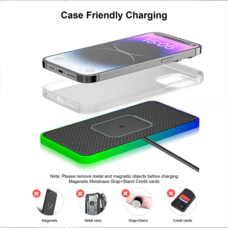15W 10W 7.5W 5W Wireless Charger RGB Fast Wireless Charging Pad with 1M Cable for Qi-enabled Smart Phones for iPhone 15Pro Max/15 Pro/15 Plus/15 14 13 for Huawei Mate60 Pro for Xiaomi 13pro for Airpods