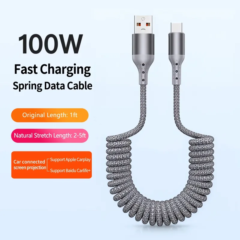 PD100W Type-C to Type-C Elbow Coiled Cable PD Fast Charging Data Transmission Copper Core Line 1.5M Long for iPhone 17 17 Pro Max 16 15 for Xiaomi 17pro for Samsung Galaxy S25 Ultra for OPPO for VIVO