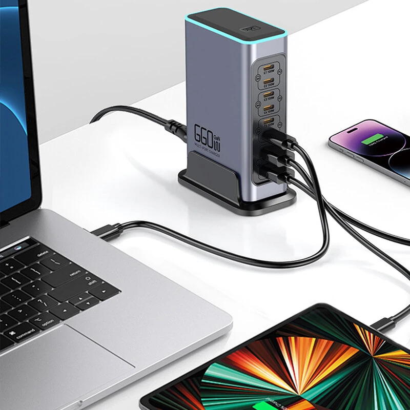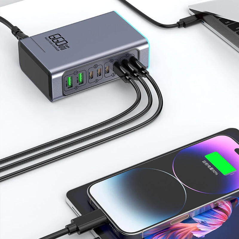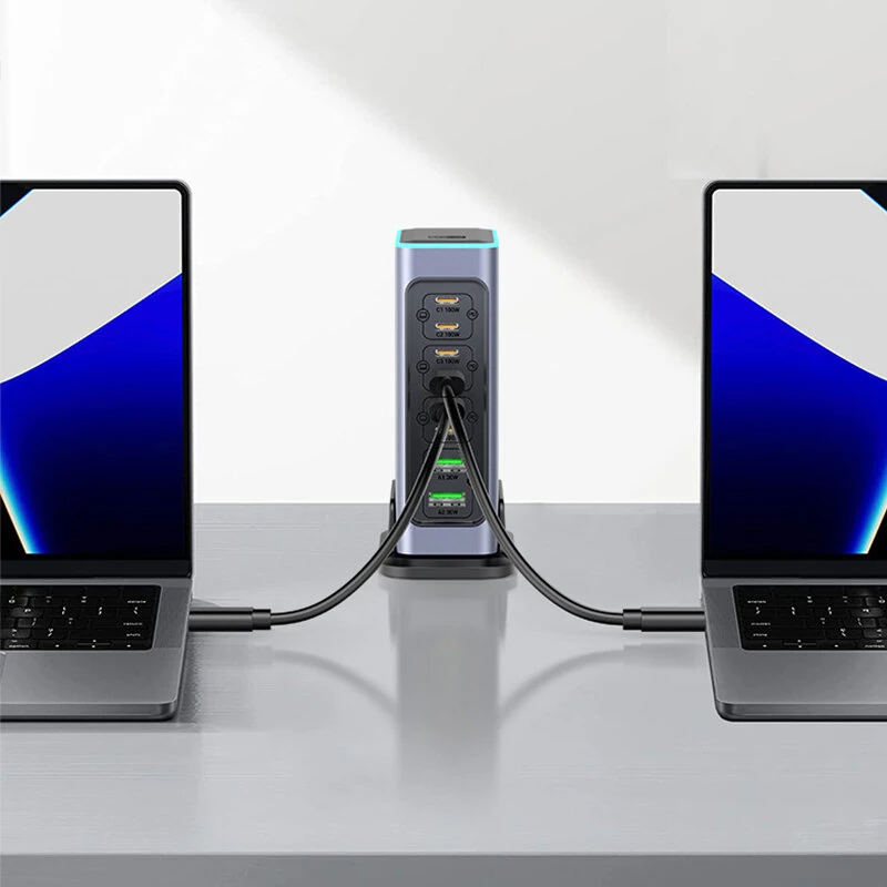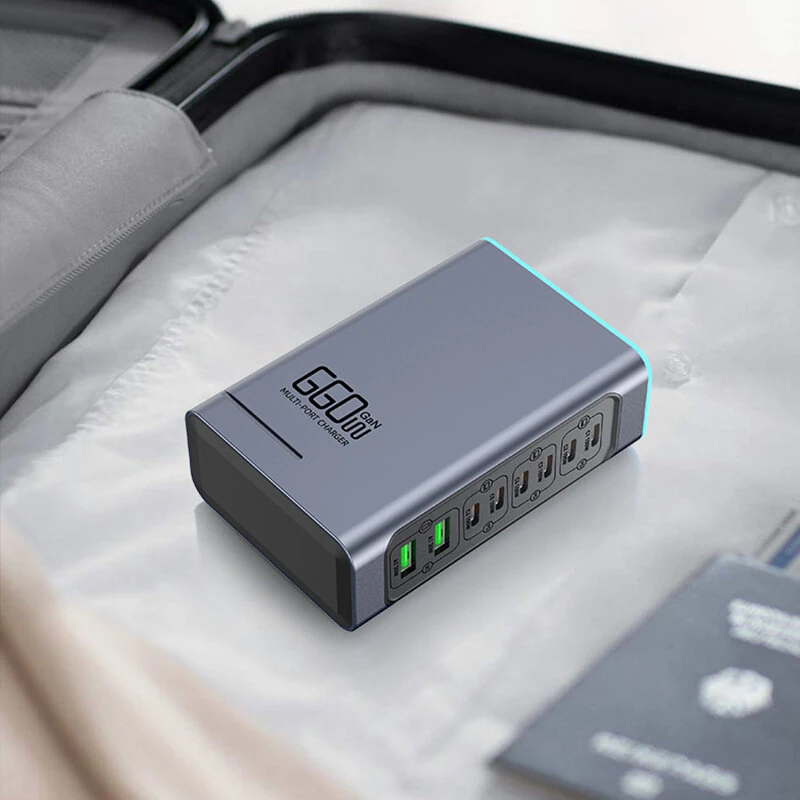 [GaN Tech] Bakeey WLX-F8L 660W 8-Port USB PD Charger 2USB-A+6USB-C PD QC3.0 FCP AFC Fast Charging with RGB Light Desktop Charging Station EU Plug US Plug for iPhone 16 16 Pro 15 14 13 Pro Max for Huawei Pura X for Xiaomi 15pro