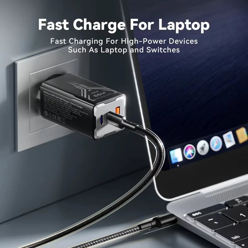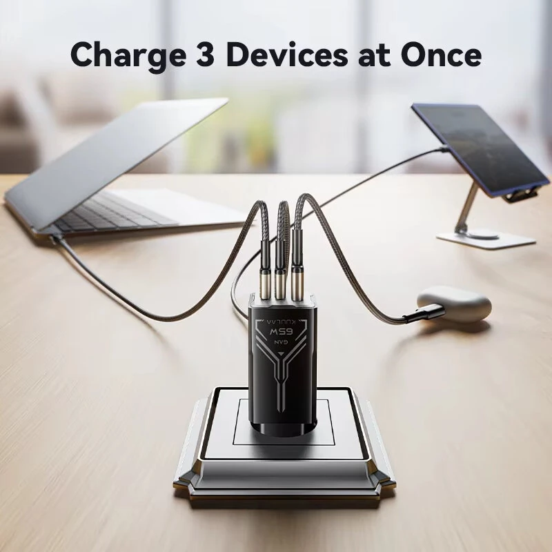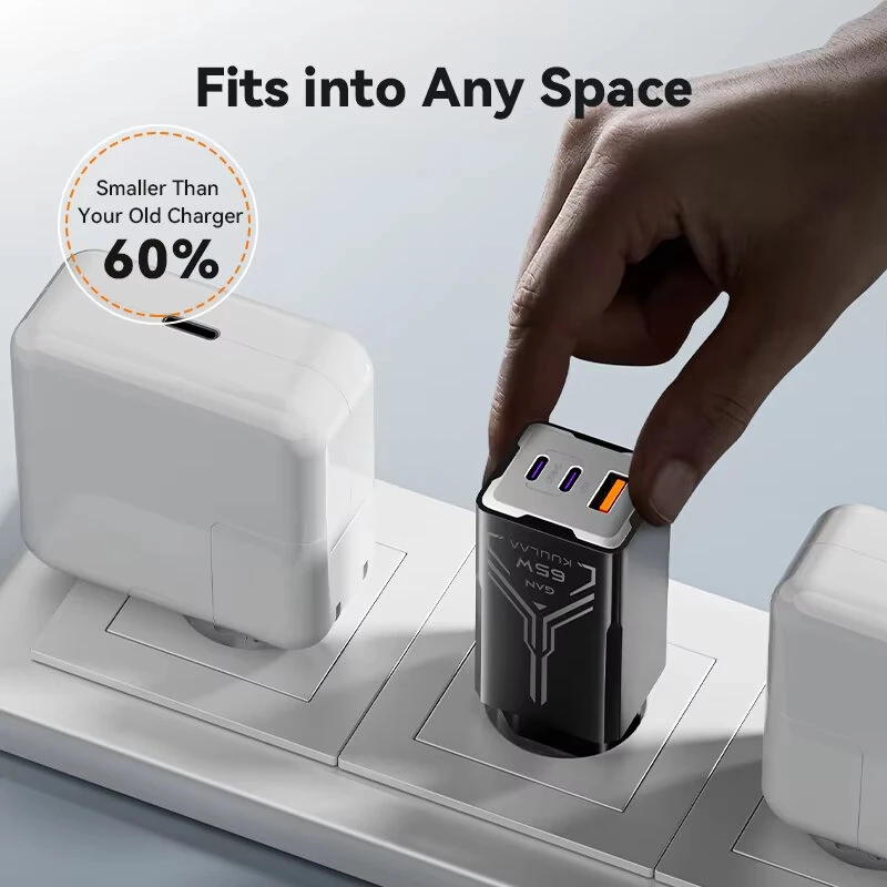 [GaN Tech] KUULAA KL-CD64 65W 3-Port USB PD Charger USB-A+2USB-C PD Fast Charging Wall Charger Adapter EU Plug US Plug for iPhone 16 16 Pro 15 14 13 Pro Max for Xiaomi 15 Ultra for Samsung Galaxy S25 Ultra for Huawei Pura X