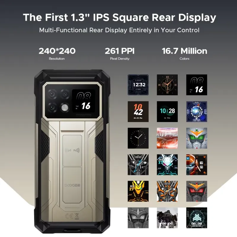DOOGEE S200 Max 5G 1.3 inch Rear Display 36GB 512GB Dual Flashlights 108MP Triple Camera Night Vision Dimensity 7050 6.72 inch 120Hz 22000mAh 66W Fast Charge Android 15 NFC IP68 IP69K Waterproof Rugged Smartphone
