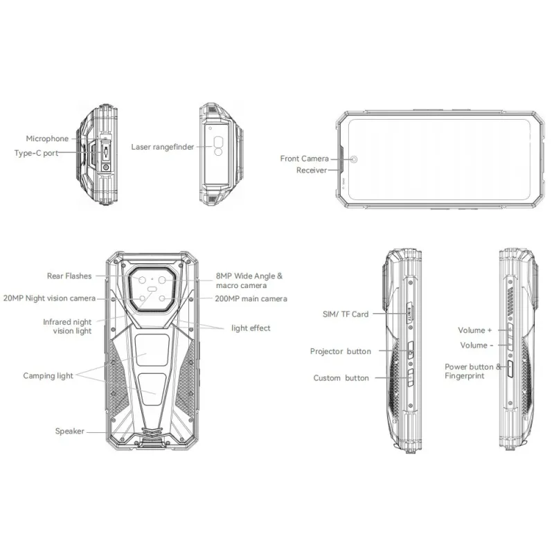 DOOGEE V Max LR 5G AI Laser Ranging Dual Camping Lights 20500mAh 36GB 512GB 200MP Triple Camera Night Vision 6.78 inch 120Hz Loud Speaker Android 15 Dimensity 7300 NFC IP68 IP69K Waterproof Rugged Smartphone