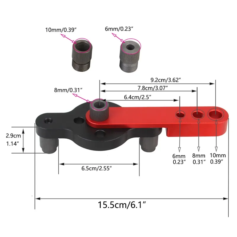 6/8/10mm Vertical Pocket Hole Dowel Jig Kit Carpentry Self Centering Drill Guide Locator Aluminum Woodworking Hole Puncher