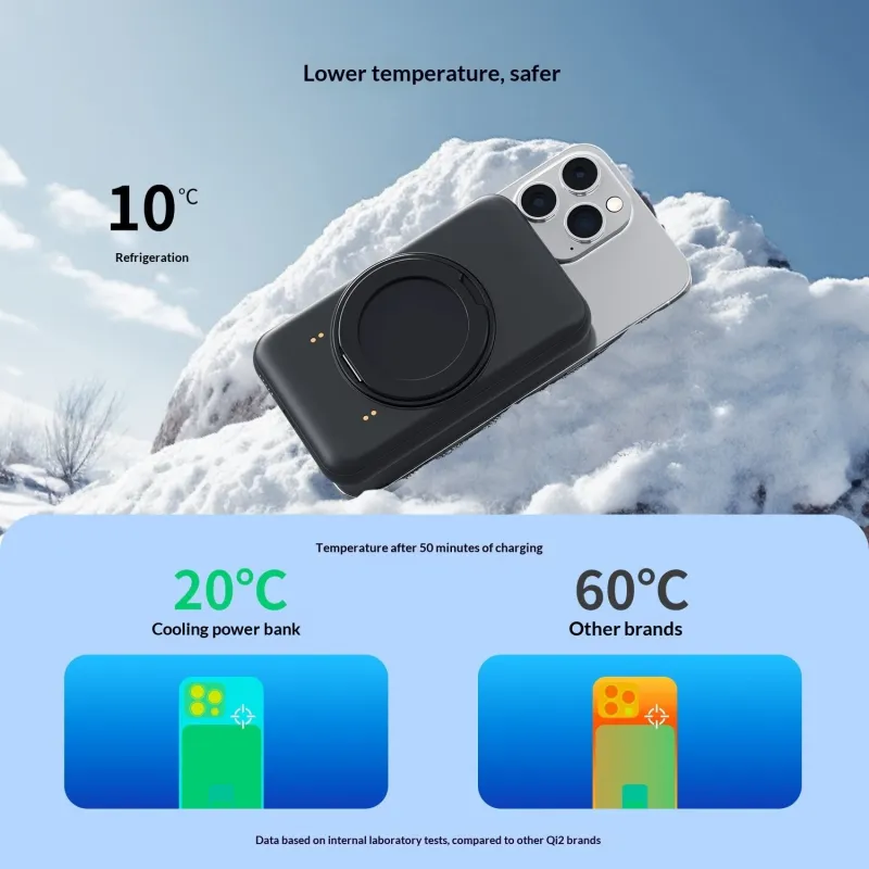 QI2 Magnetic Wireless Power Bank 20W 10000mAh Power Bank with Ice Cooling External Battery Power Supply with 1 Input & 2 Outputs Fast Charging for iPhone 17 17Pro 16 Pro Max 15 14 13 for Huawei Mate XTs for Samsung Galaxy S25 Ultra Come with Phone Stand