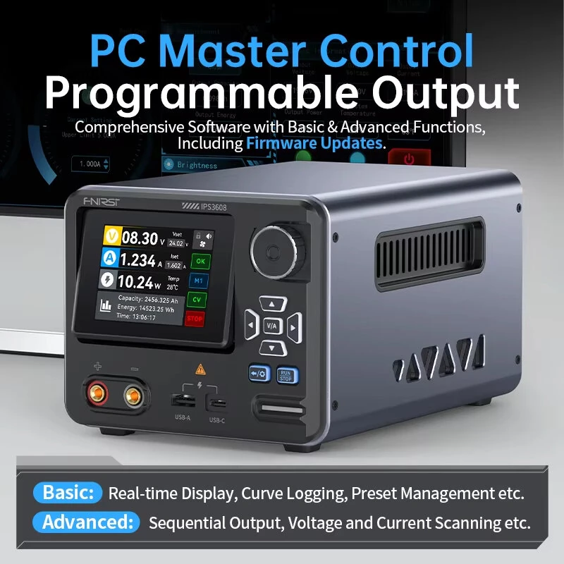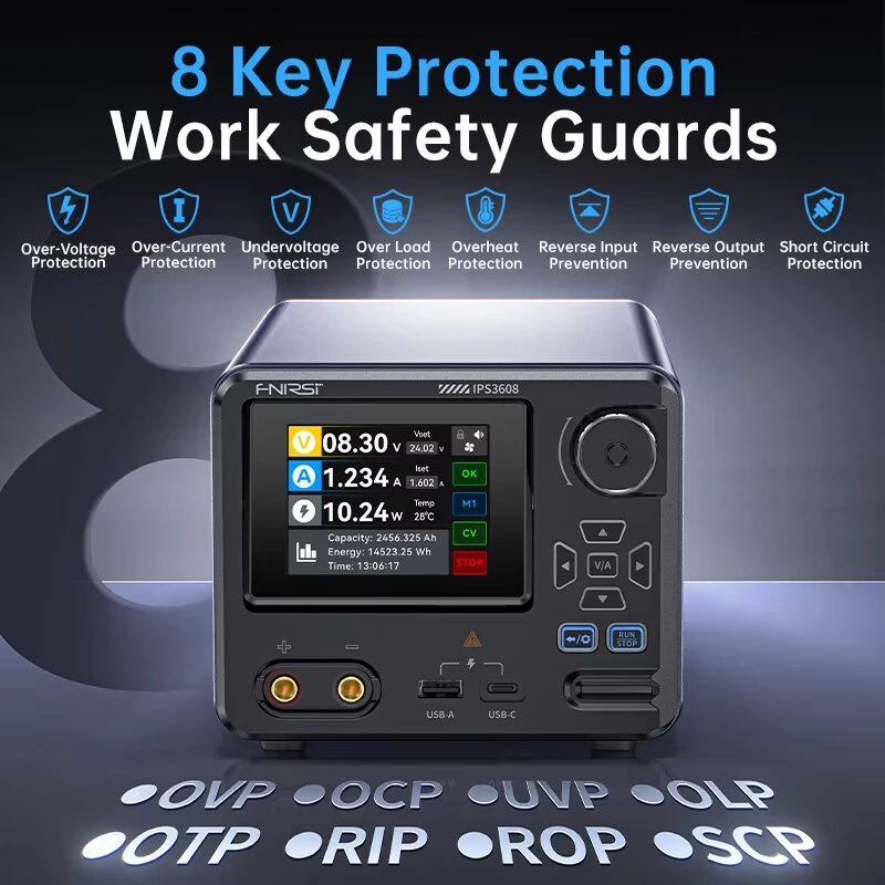 FNIRSI IPS3608 Smart Power Supply Adjustable DC 36V 8A 285W USB-C PD 3.0 QC 3.0 Fast Charging Multi-Protocol Precision