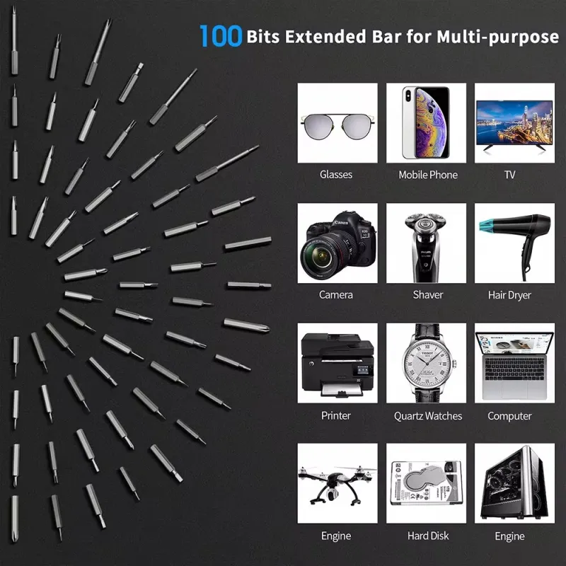 120 in 1 Precision Electric Screwdriver Set 350mAh Lithium Battery 180 RPM Motor 100 Precision Bits Ergonomic Design LED Lights