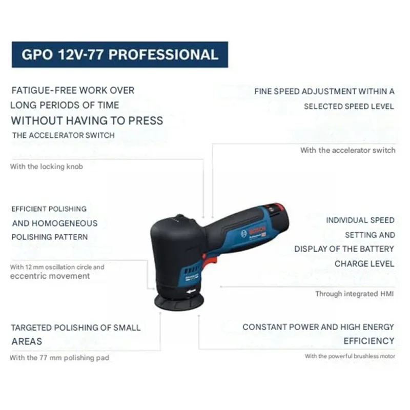 GPO 12V-77 Professional Polisher 12V Brushless Motor 77mm Backing Pad