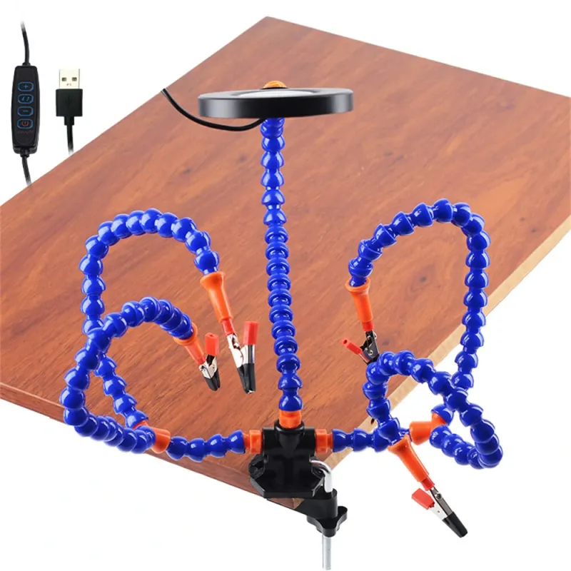 3 Holes 5 Arms Multifunctional Welding Bracket Arm Third Hand Universal Welding Table Simple Model Standard Usb Light Magnifying Glass For Welding Assembly Repair Model